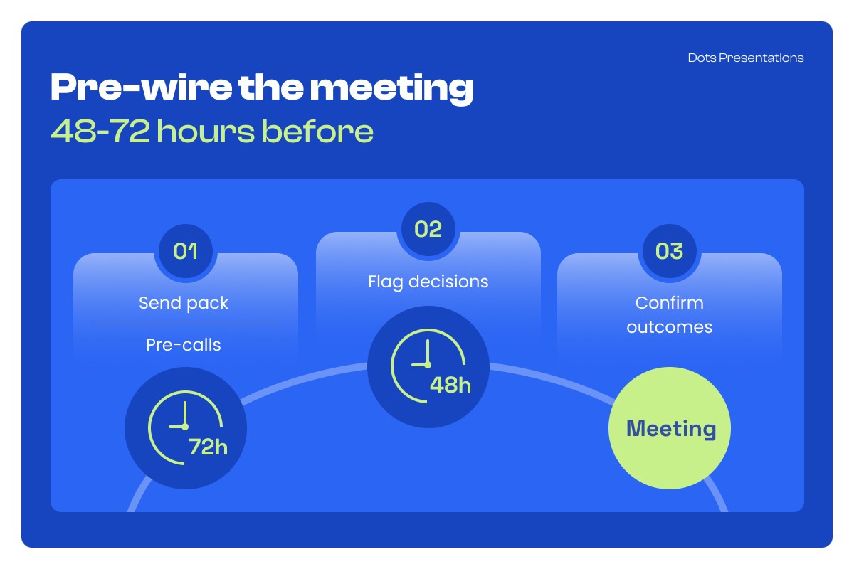 48 hours before: Flag the two or three decision points explicitly in the email body, not buried in the attachment.
