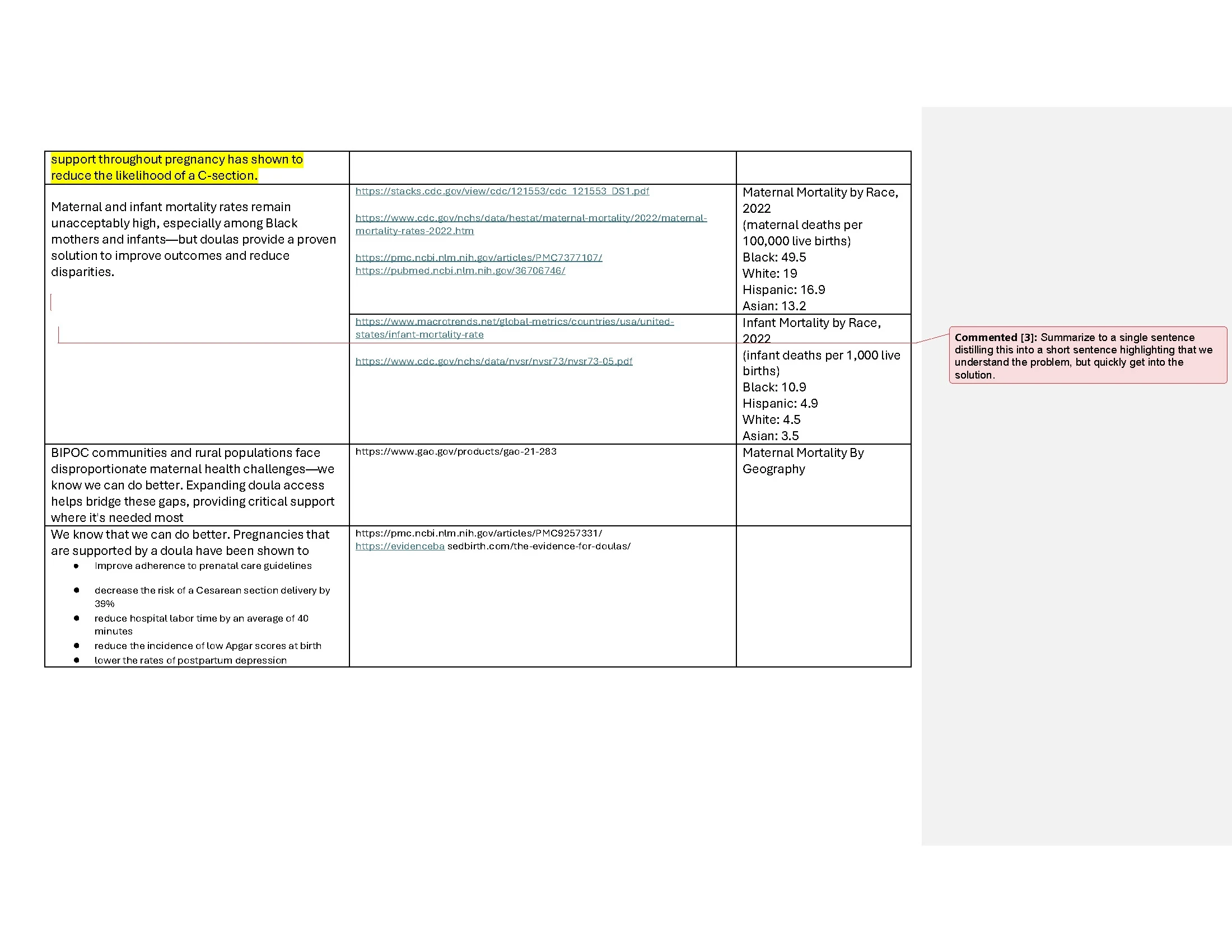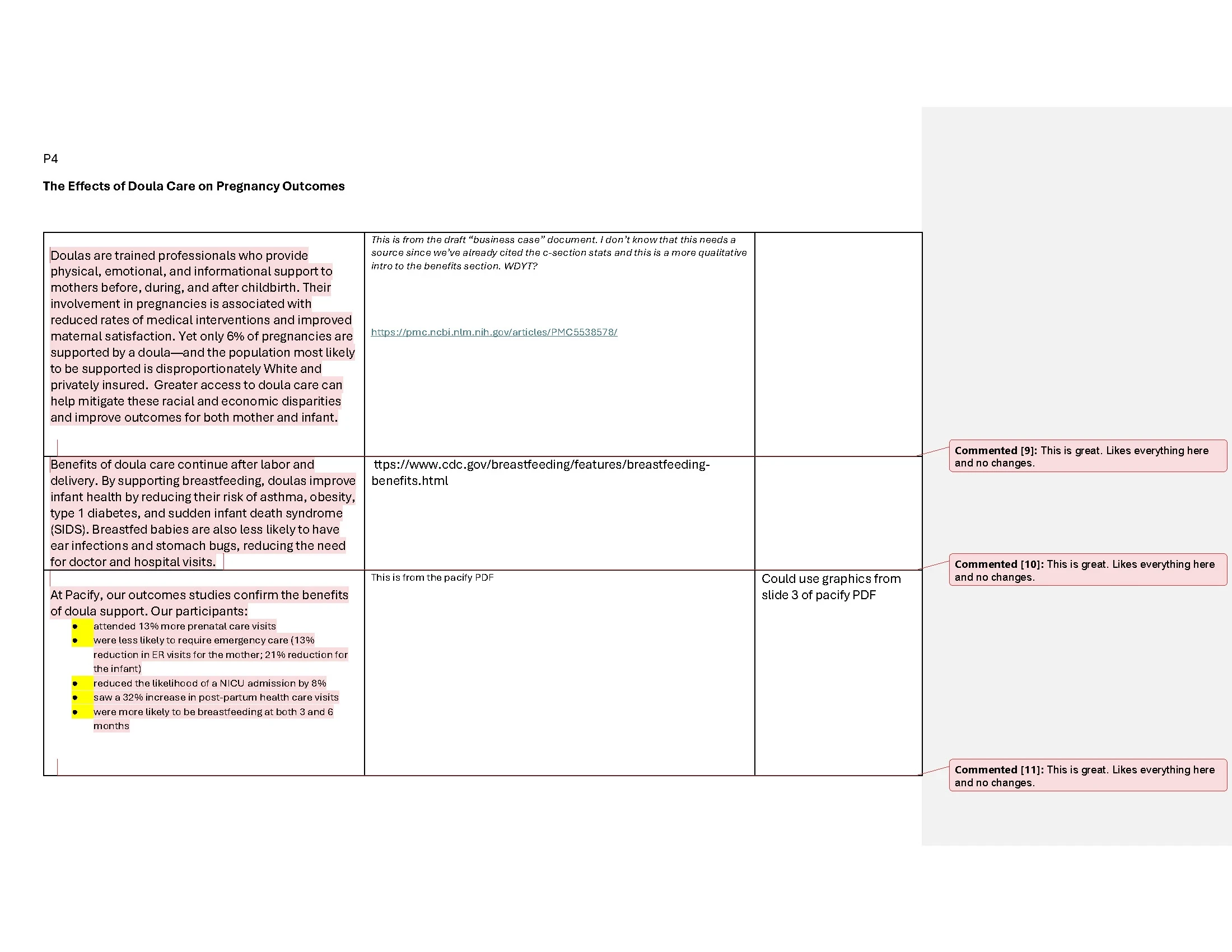Pacify had the research, the outcomes data, and a story that could shift how insurance leaders think about maternal care. What they didn't have was a document that looked like it belonged on a payer's desk. The content arrived as annotated tables in a Word file, with statistics buried inside paragraphs and margin comments flagging missing visuals. For a white paper aimed at convincing insurance decision-makers to fund doula programs, it read like an internal draft, not a finished argument.